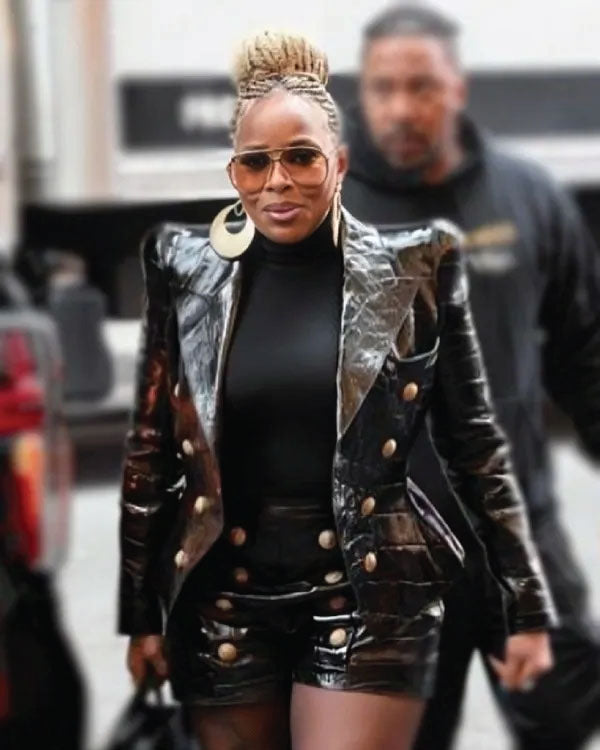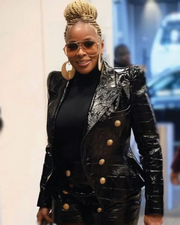 CBS Morning Mary J. Blige Croc-Effect Black Leather Blazer