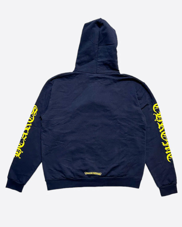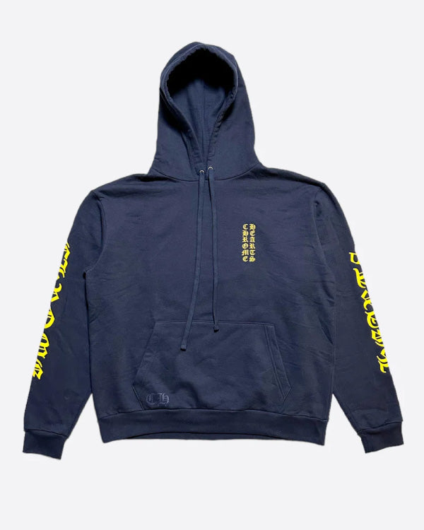 Chrome Hearts Navy & Yellow Script Logo Hoodie