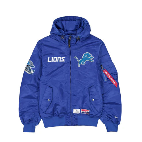DETROIT LIONS MEN'S NEWERA X ALPHA INDUSTRIES L-2B HOODED BOMBER JACKET
