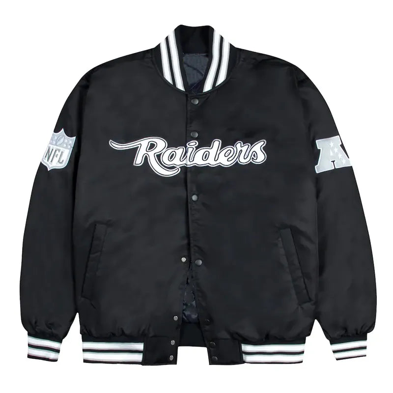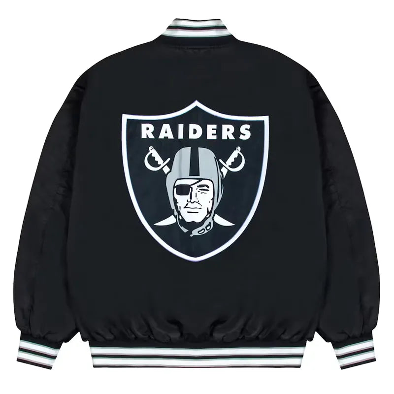 Las Vegas Raiders Gray and White Rib Bomber Black Jacket