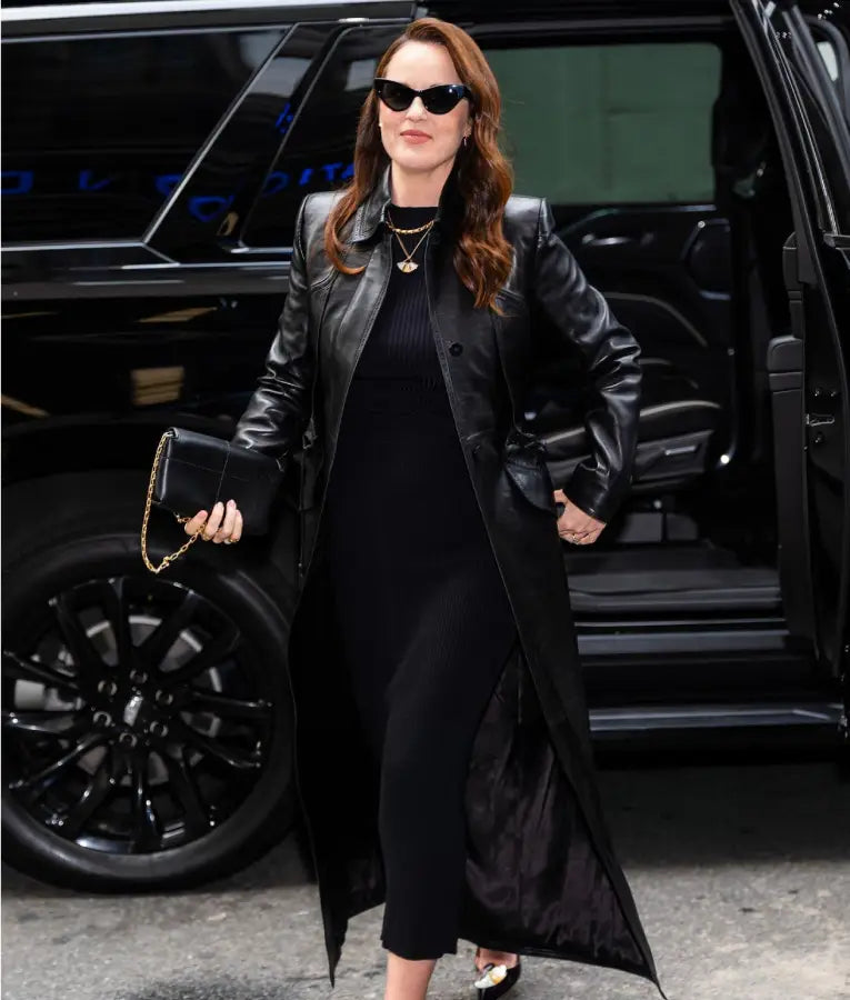 Michelle Dockery NYC 2025 Black Long Coat