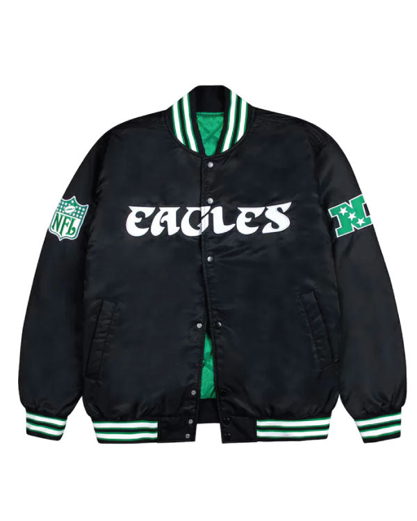 Philadelphia Eagles Green and White Rib Bomber Black Jacket