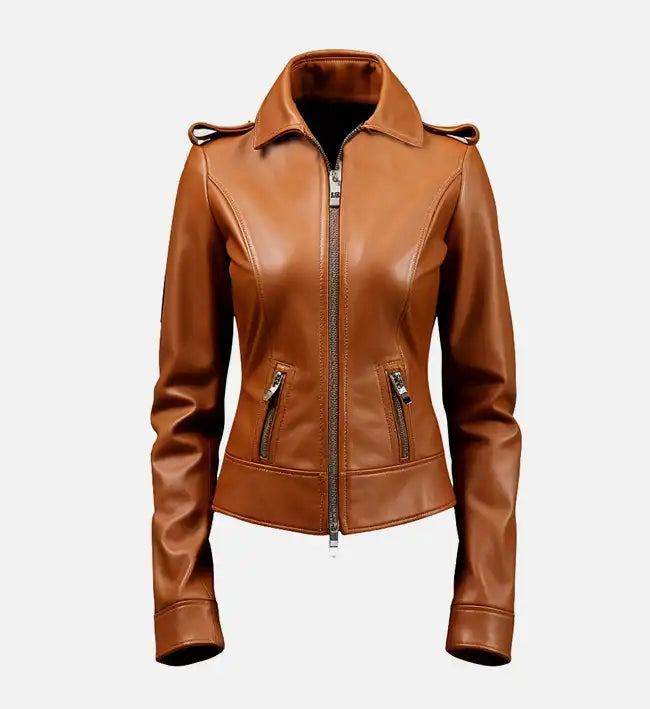 Slim fit Women Brown Leather Jacket Slim fit Women Brown Leather Jacket