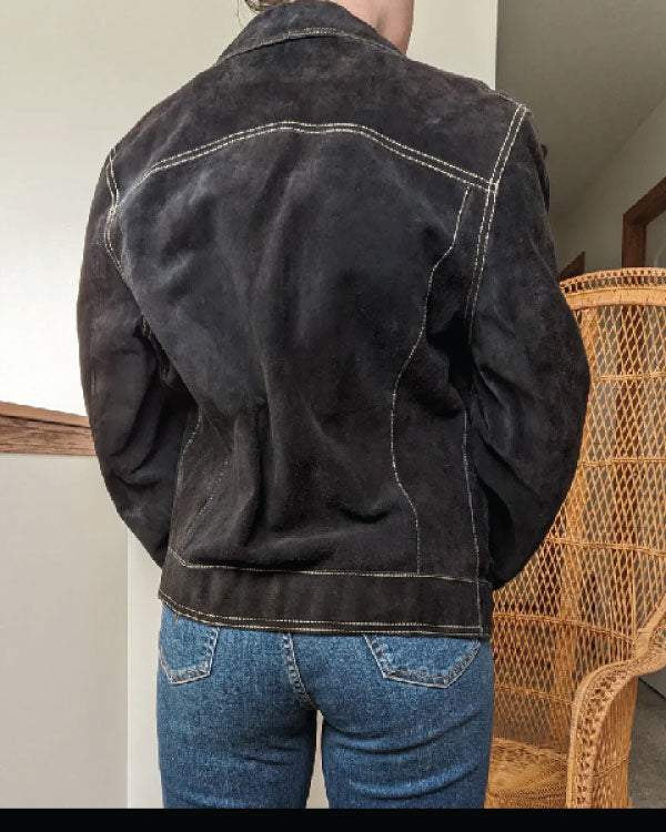 Smartypants S02 Blue Suede Contrast Stitch Suede Leather Jacket