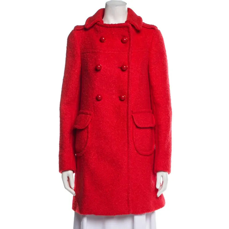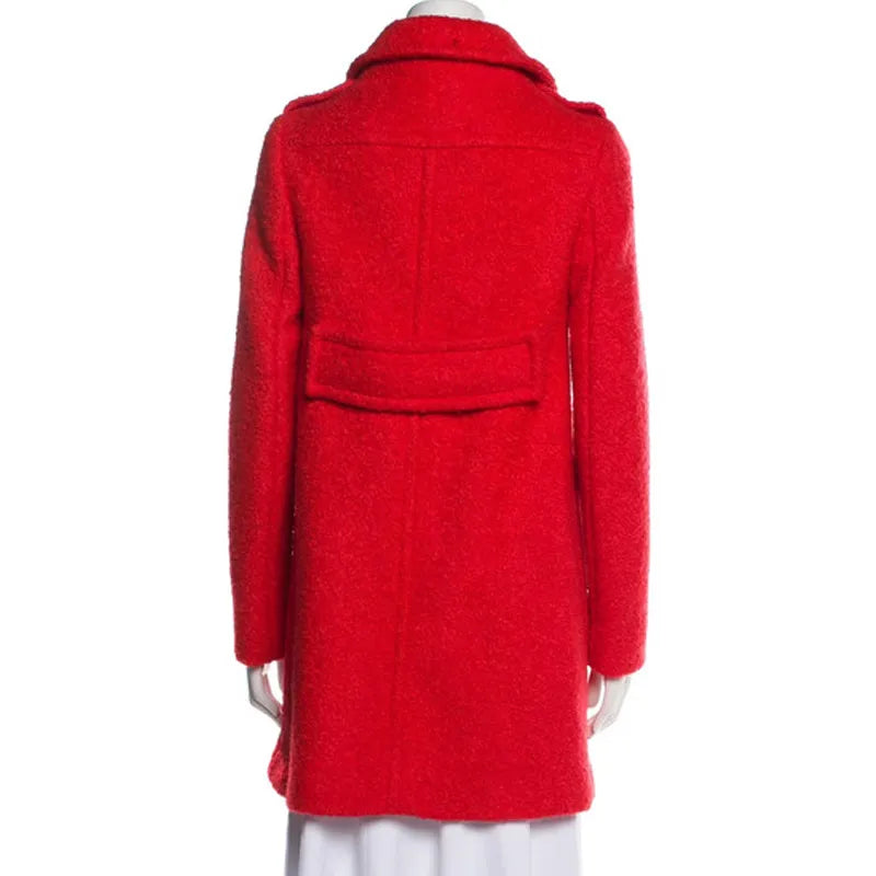 - Front: Double-breasted buttoned closure