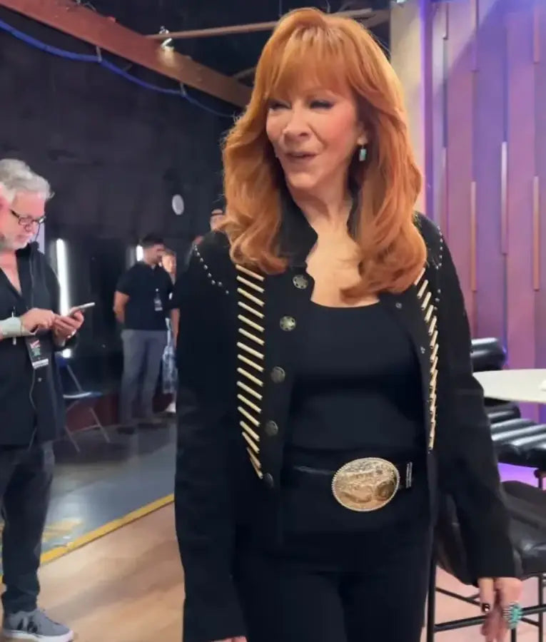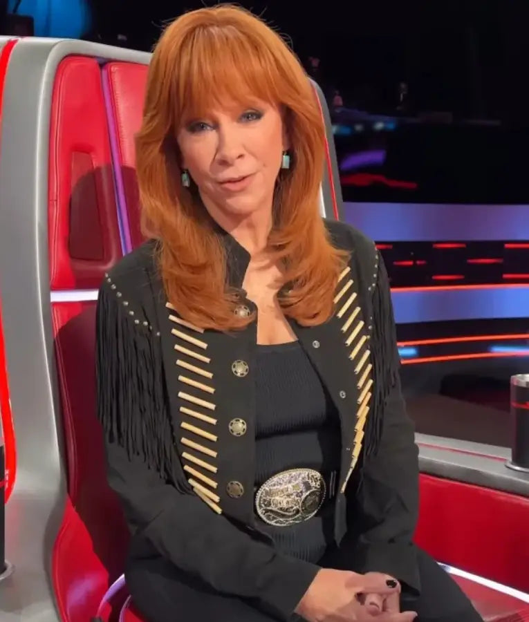 The Voice S28 Reba McEntire Black Leather Fringe Jacket