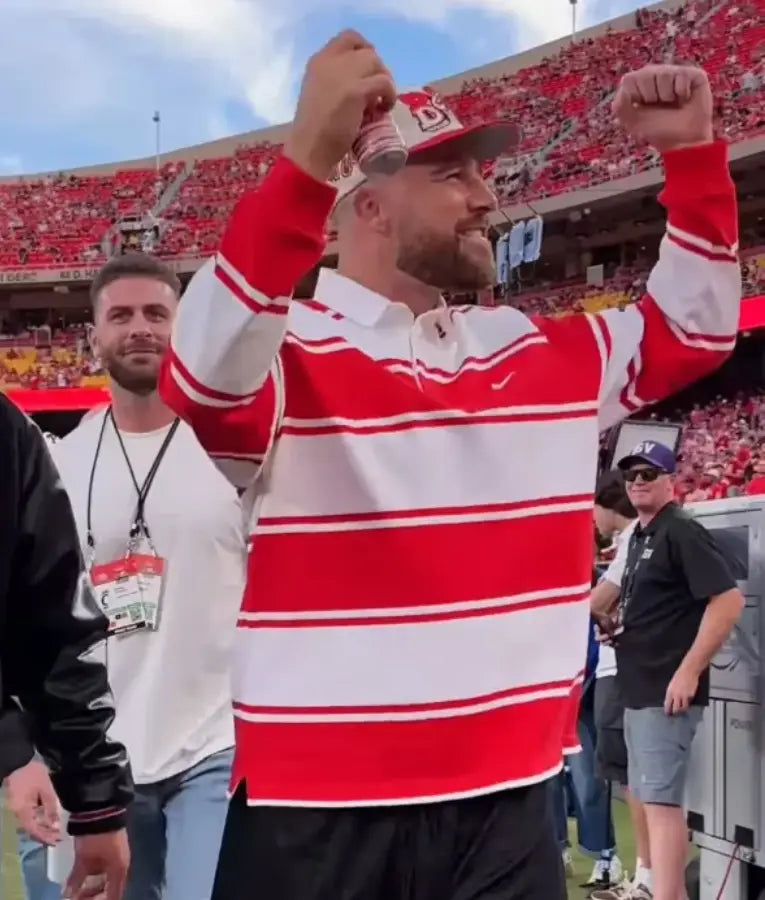 Travis Kelce Cincinnati vs Nebraska Game Striped Rugby Shirt