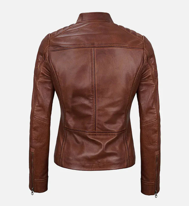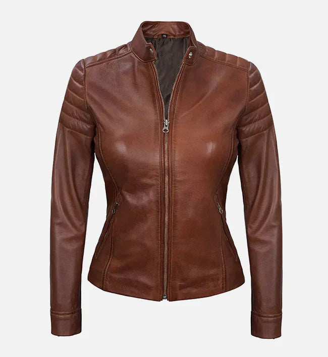 Women's Cafe Racer Brown Padded Leather Jacket Women's Cafe Racer Brown Padded Leather Jacket